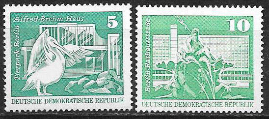 ГДР 1973 год. Стандарт. Строительство в ГДР. Пеликан, Нептун, 2 марки