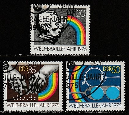 ГДР 1975 год. 150 лет азбуке Брайля, 3 марки, гашеные