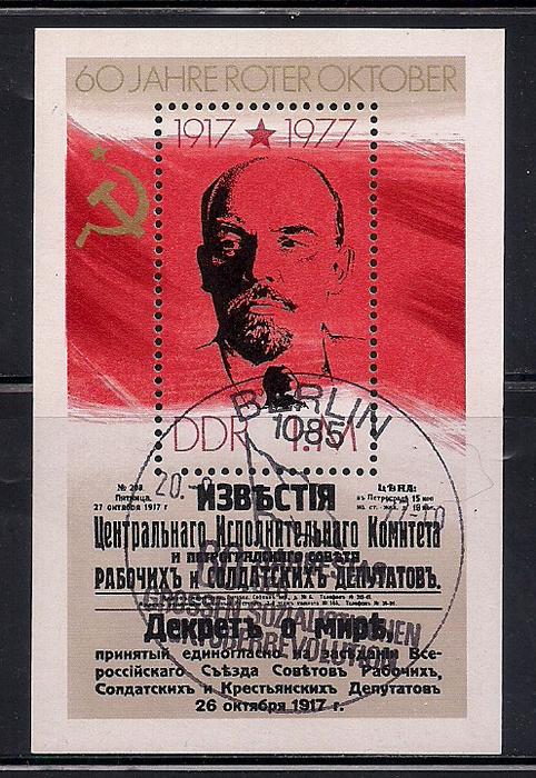 Купить ГДР 1977 год. В.И.Ленин. 60 лет Октябрьской революции. 1 гашеный блок в СПБ, Москве и по всей России | Филателия