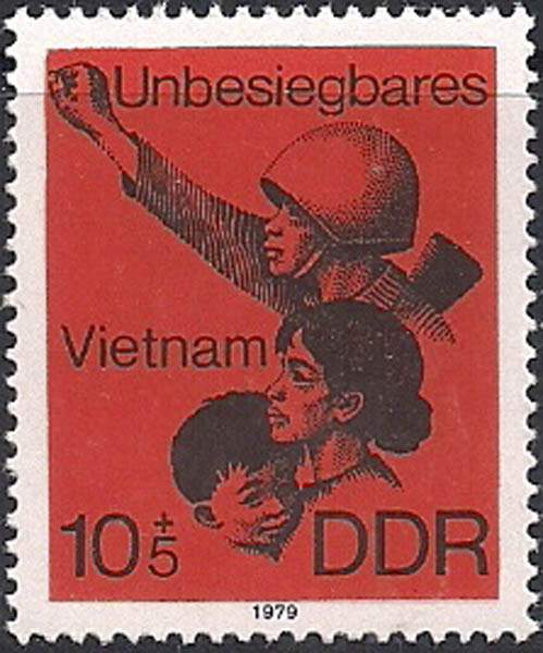 ГДР 1979 год. Непобеждённый Вьетнам. Мать с ребёнком и солдат. 1 марка