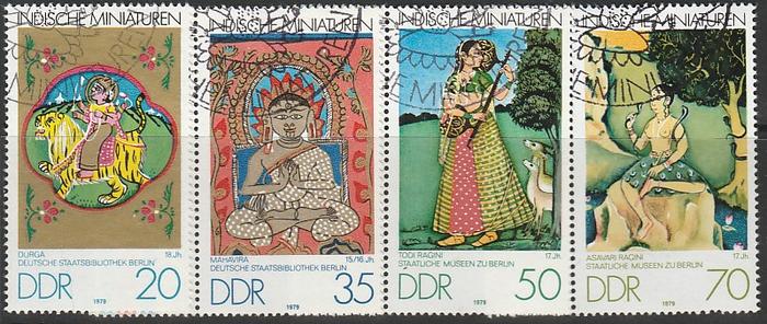 ГДР 1979 год. Живопись. Индийские миниатюры, 4 гашёные марки