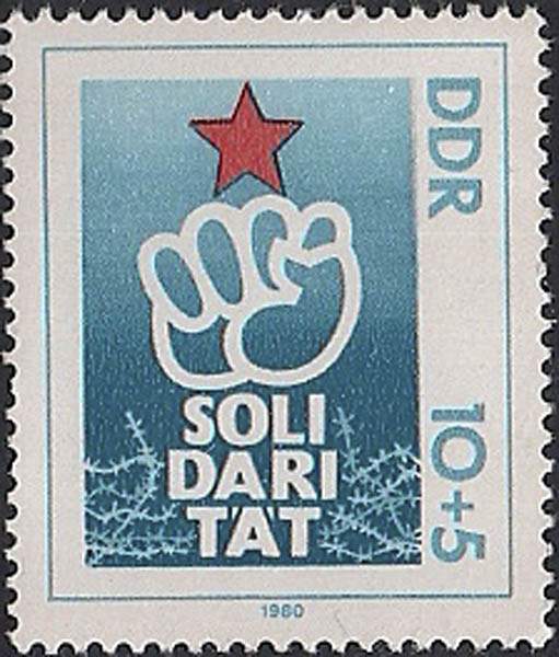 ГДР 1980 год. Международная солидарность. Символ - сжатый кулак. 1 марка
