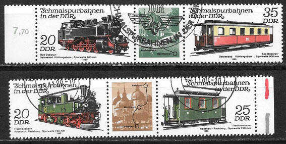 ГДР 1980 год. Паровозы и вагоны. Сцепка 4 марок.