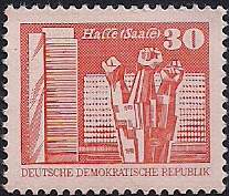 ГДР 1981 год. Строительство в городе Галле. 1 марка (21.5 * 17.5 мм)