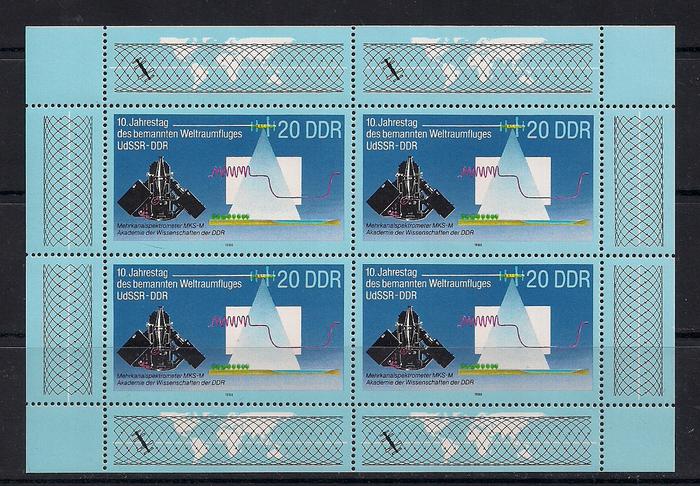 ГДР 1988 год. 10 лет сотрудничества в космосе. Малый лист (1.7м)