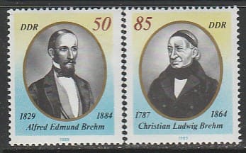 ГДР 1989 год. Зоолог Альфред Брем и орнитолог Людвиг Брем, 2 марки.