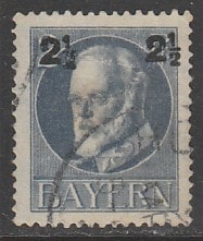 Германия (Бавария) 1916 год. Стандарт. Король Баварии Людвиг III, ном. 2.1/2-2 Pf, 1 марка из серии (гашёная)
