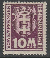 Германия (Данциг) 1923 год. Герб города, 10 М., 1 доплатная марка из серии (наклейка)