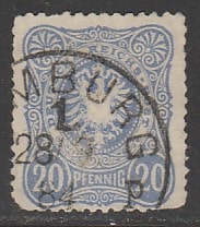 Германия (II Рейх) 1880 год. Имперский орёл в овале, номинал 20 Pf., 1 марка из серии (гашёная) (1 из 6, без углов)