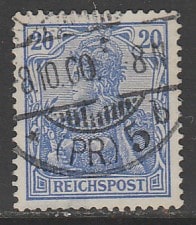 Германия (II Рейх) 1889 год. Германия с императорской короной, надпись "reichspost", номинал 20 Pf., 1 марка из серии (гашёная) (1 из 10, разные гашения)