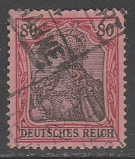 Германия (II Рейх) 1902 год. Стандарт. Аллегорический образ Германии. Надпись "deutsches reich", 80 Pf., 1 марка из серии (гашёная) (1 из 10, разные гашения)