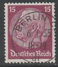 Германия (III Рейх) 1933/1936 год. Стандарт. Рейхспрезидент Пауль фон Гинденбург, 15 Pf., 1 марка из серии (гашёная) (1 из 17)