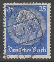Германия (III Рейх) 1933/1936 год. Стандарт. Рейхспрезидент Пауль фон Гинденбург, 25 Pf., 1 марка из серии (гашёная) (1 из 17)