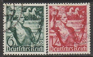 Германия (III Рейх) 1938 год. 5 лет захвату власти Адольфом Гитлером, 2 марки (гашёные) (20/3/5)
