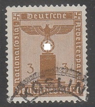 Германия (III Рейх) 1938 год. Орёл на постаменте. Партийные служебные марки. I выпуск, ном. 3 Pf, 1 марка из серии (гашёная) (1 из 11)