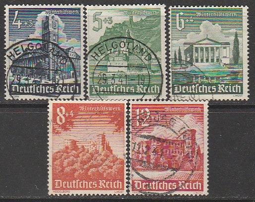 Германия (III Рейх) 1940 год. Организация зимней помощи: здания, 5 марок из серии (гашёные)