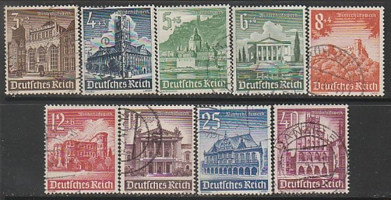 Германия (III Рейх) 1940 год. Организация зимней помощи: здания, 9 марок (гашёные) (40/12/19)