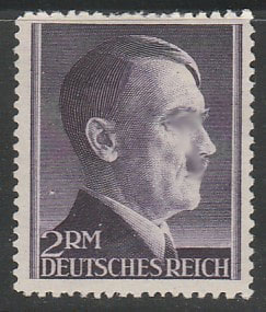Германия (III Рейх) 1942 год. Рейхсканцлер А. Гитлер, стандарт (ном. 2 М.), 1 марка из серии (наклейка)
