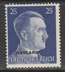 Германия (III Рейх. Оккупация Прибалтики и Белоруссии) 1941 год. Стандарт. Рейхсканцлер Адольф Гитлер (ном. 25 Pf), НДП, 1 марка из серии.