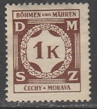 Германия (III Рейх. Протекторат Богемии и Моравии) 1941 год. Цифровой рисунок, ном. 1 К, 1 служебная марка из серии (наклейка)