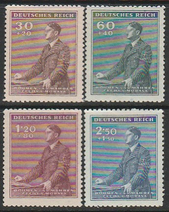 Германия (III Рейх. Протекторат Богемии и Моравии) 1942 год. 53 года со дня рождения Адольфа Гитлера, 4 марки (наклейка)