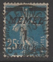 Германия (Мемель) 1922 год. Стандарт. НДП чёрного цвета типографии Парижа, 1 М/25 С, 1 марка из серии (гашёная) (1 из 14)