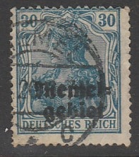 Германия (Мемельская область) 1920 год. Стандарт. Аллегорический образ Германии. НДП на марке Веймарской республики, 30 Pf, 1 марка из серии (гашёная) (1 из 17)