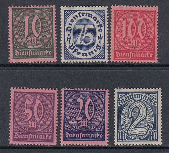 Германия. Рейх 1922 год. Служебные марки, 6 марок