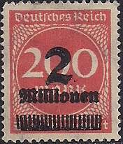 Германия (Рейх) 1923 год. Стандарт (ном. 200). Надпечатка дополнительного номинала. 1 марка из серии