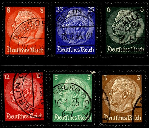 Германия (Рейх) 1934 год. Смерти Пауля фон Гинденбурга. 6 гашеных марок (140/18/14)