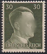 Германия (Рейх) 1941 год. Стандарт. Адольф Гитлер (ном. 30). 1 марка из серии (0.1м)