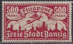 Германия (Рейх). Данциг 1923 год. Авиапочта (ном. 500). 1 марка из серии