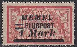 Германия Рейх (Мемель) 1922 год. Авиапочта. НДП нового номинала (1 марка) на марке с номиналом 40 сантимов. 1 марка из серии
