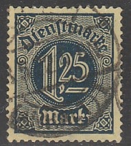 Германия (Веймарская республика) 1920 год. Цифровой рисунок, ном. 1,25 М, 1 служебная марка из серии (гашёная) (1 из 11) (5)