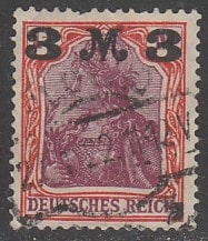 Германия (Веймарская республика) 1921 год. Стандарт. Аллегорический образ Германии, надпечатка 3 М/1,25 М, 1 марка из 4 (гашёная) (3,5)