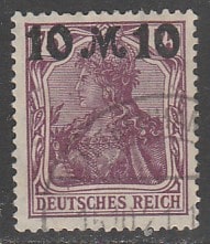 Германия (Веймарская республика) 1921 год. Стандарт. Аллегорический образ Германии, надпечатка 10 М/75 Pf., 1 марка из 4 (гашёная)