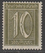 Германия (Веймарская республика) 1921 год. Стандарт. Номинал в прямоугольнике, 10 Pf., 1 марка из серии (наклейка) (1 из 19)