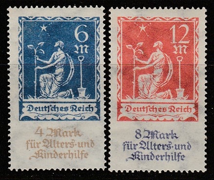 Германия (Веймарская республика) 1922 год. Помощь детям. Девочка сажает дерево, 2 марки