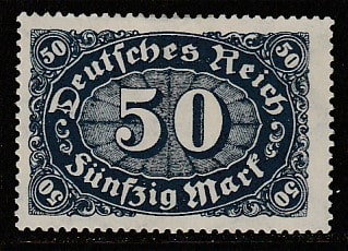 Германия (Веймарская республика) 1922 год. Стандарт. Цифровой рисунок в овале, 50 М.,1 марка из серии (наклейка)