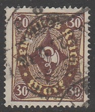 Германия (Веймарская республика) 1922 год. Стандарт. Почтовый рожок, номинал 30 М., 1 марка из серии (гашёная)