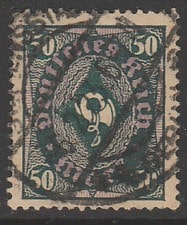 Германия (Веймарская республика) 1922 год. Стандарт. Почтовый рожок, номинал 50 М., 1 марка из серии (гашёная)