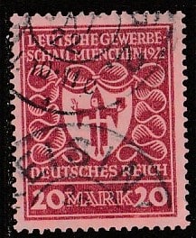 Германия (Веймарская республика) 1922 год. Выставка в Мюнхене. Герб города, номинал 20 М., 1 марка из серии (гашёная)