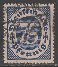 Германия (Веймарская республика) 1922/1923 год. Номинал в овале, 75 Pf., 1 служебная марка из серии (гашёная)