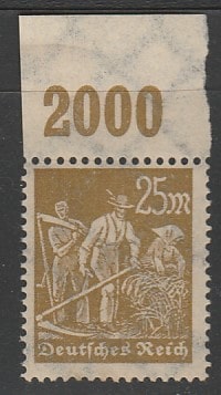 Германия (Веймарская республика) 1922/1923 год. Стандарт. Крестьяне, 25 М., 1 марка из серии (наклейка) (I)