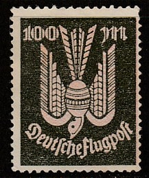 Германия (Веймарская республика) 1923 год. Авиапочта. Деревянный голубь, номинал 100 М., 1 марка из серии (наклейка)