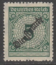 Германия (Веймарская республика) 1923 год. Цифровой рисунок в круге с розетками, надпечатка, ном. 5 Pf, 1 служебная марка из серии (наклейка)