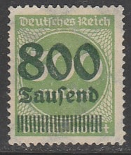Германия (Веймарская республика) 1923 год. Стандарт. Цифровой рисунок в круге. Надпечатка нового номинала, 800Tsd/300M, 1 марка из серии (наклейка) (1 из 14)