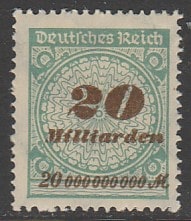Германия (Веймарская республика) 1923 год. Стандарт. Цифровой рисунок в круге с розетками, 20 Mrd M, 1 марка из серии (наклейка)