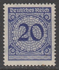 Германия (Веймарская республика) 1923 год. Стандарт. Цифровой рисунок в круге с розетками, 20 Pf., 1 марка из серии (наклейка)