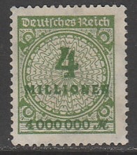 Германия (Веймарская республика) 1923 год. Стандарт. Цифровой рисунок в круге с розетками, 4Mio M, 1 марка из серии (наклейка)